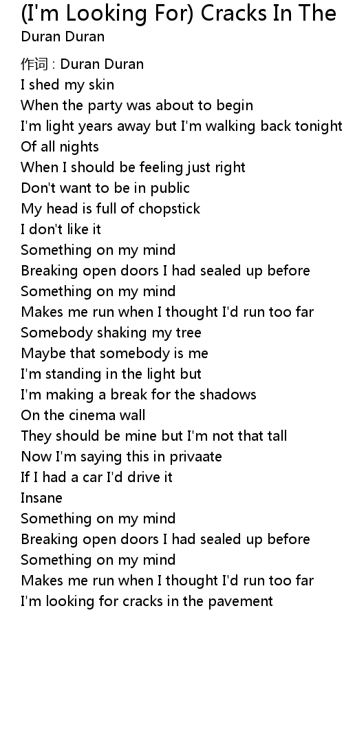 | Song | (I'm Looking For) Cracks In The Pavement |