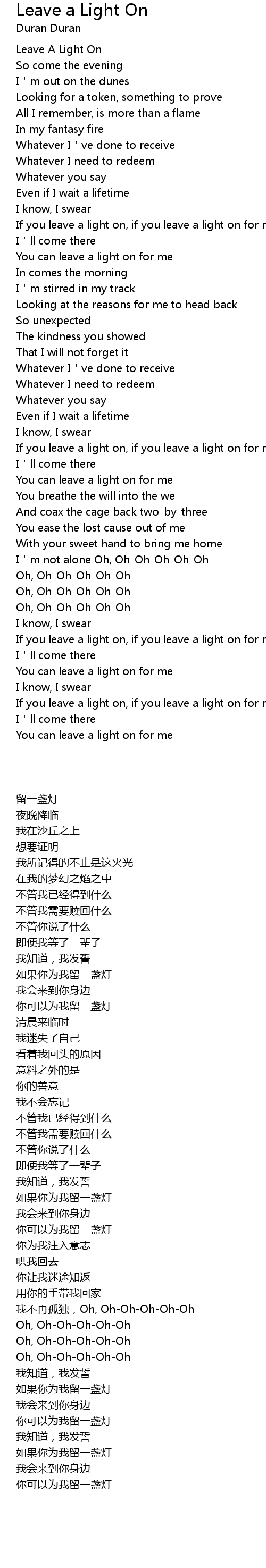 | [01:22.15] | If you leave a light on, if you leave a light on for me |