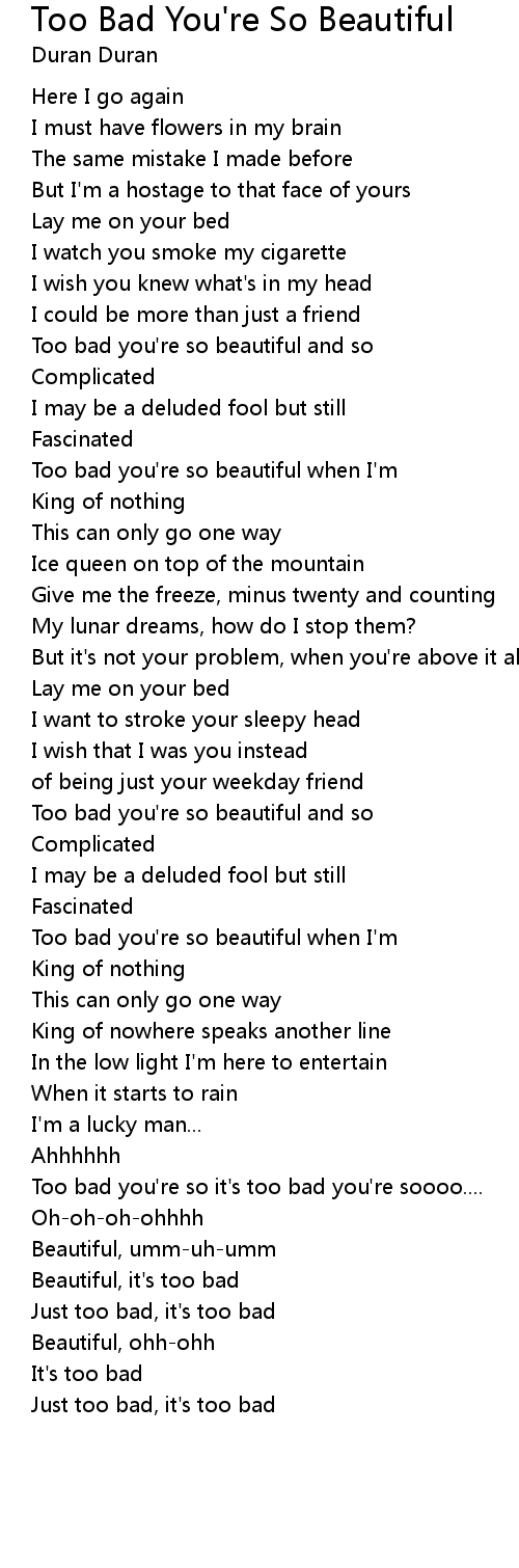 Too bad you're so beautiful when I'm |