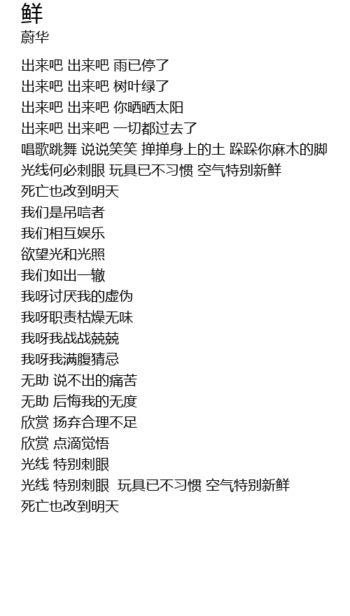 | [00:39.70] | 唱歌跳舞 说说笑笑 掸掸身上的土 跺跺你麻木的脚 |