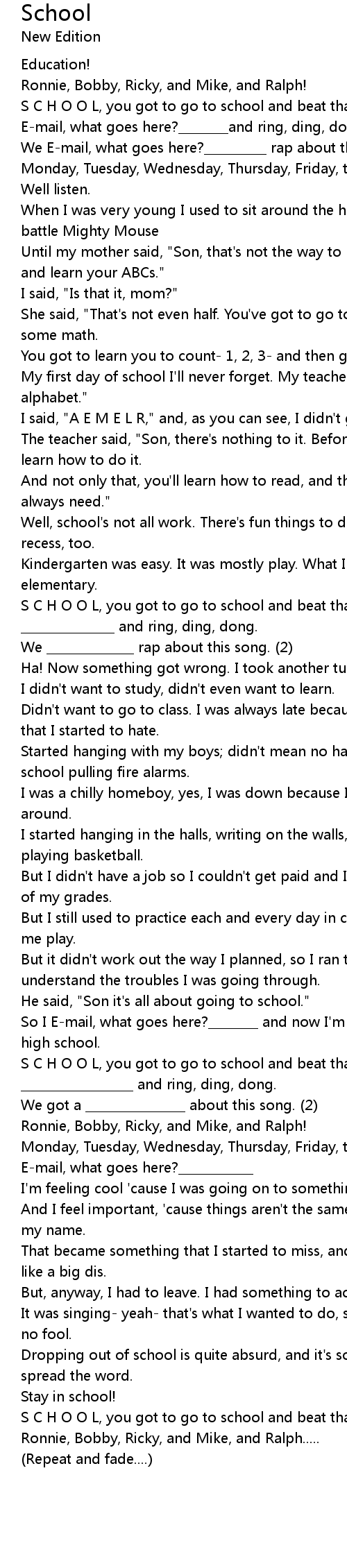 Well, school's not all work. There's fun things to do like gym, lunch, and recess, too. |