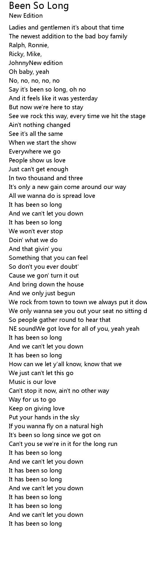 Say it's been so long, oh no |