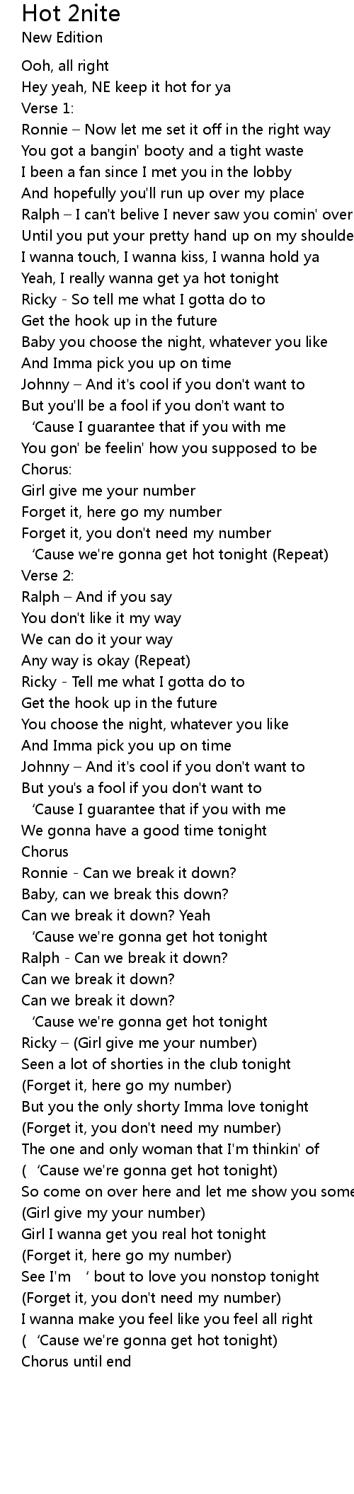 | ' Cause we' re gonna get hot tonight Repeat | |
