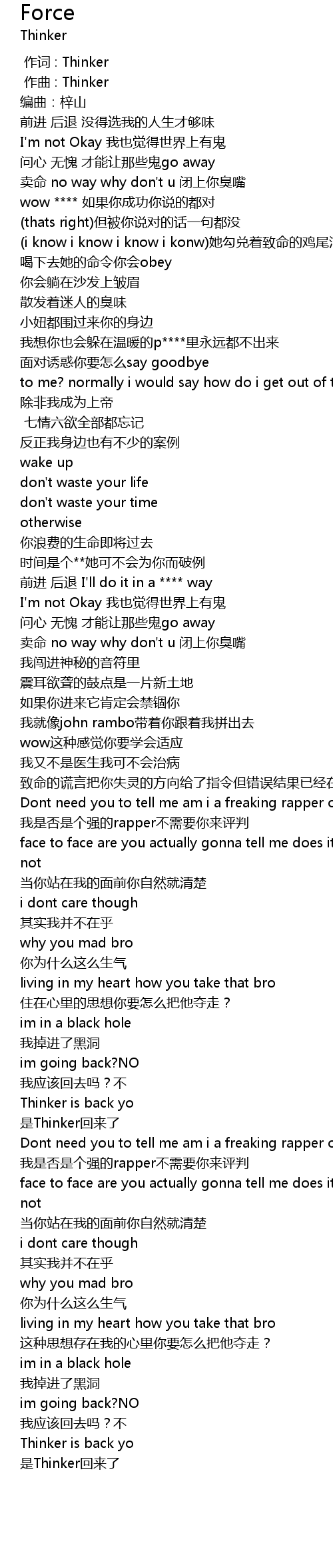 | [01:23.27] | 卖命 no way why don't u 闭上你臭嘴 |