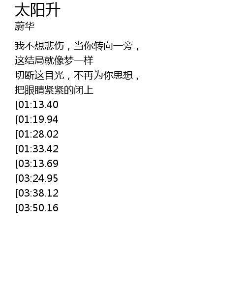 | [05:00.20][03:50.16][02:15.01] | chang kai chuang kou, zou xiang tai yang, dui zhe tian kong fang sheng chang |