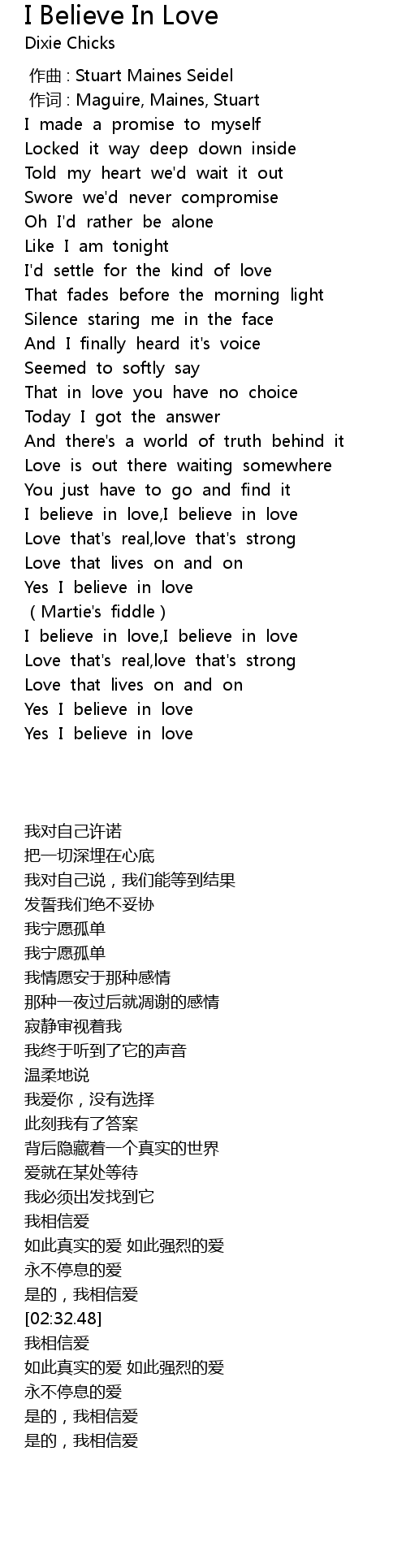 | [01:44.838] | I believe in love,I believe in love |