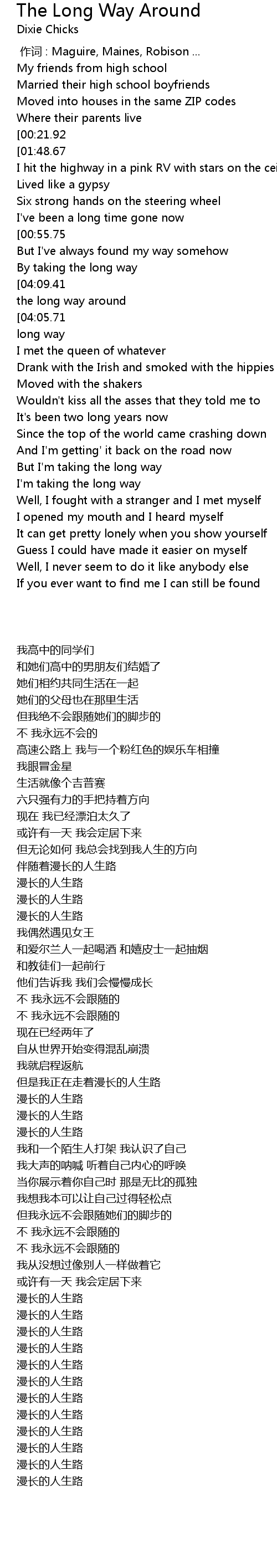 | [04:13.18][04:05.71][03:58.18][03:50.63][03:43.19][03:35.11][01:11.30] | Taking the long way |