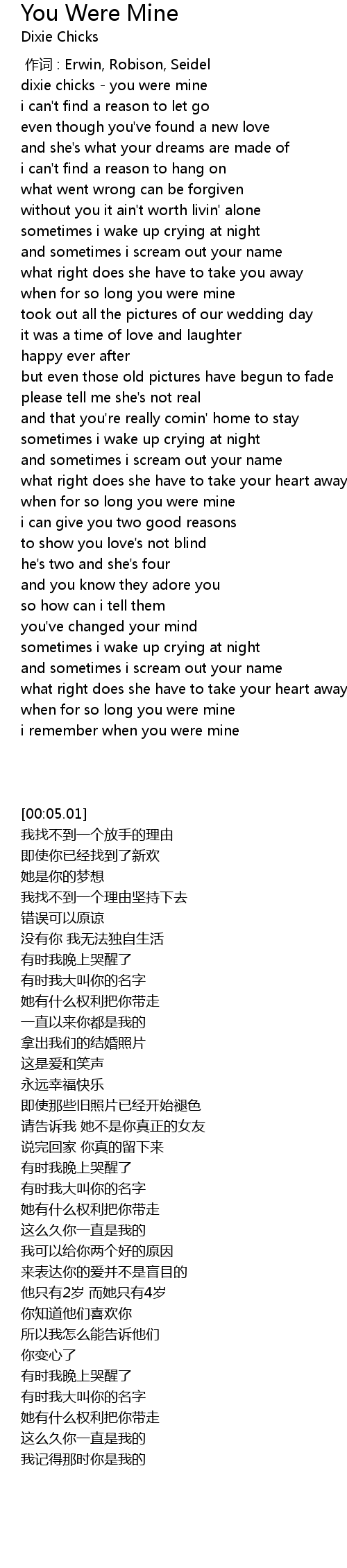 | [00:05.01] | dixie chicks you were mine |