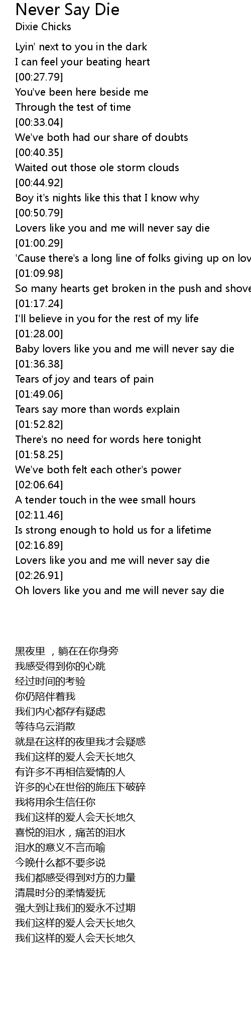 Lovers like you and me will never say die |