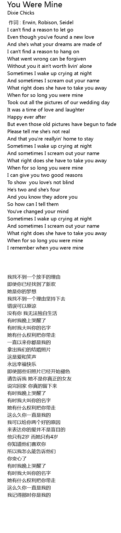 | [02:58.93] | When for so long you were mine |