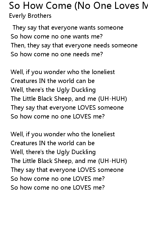 So how come no one LOVES me? |