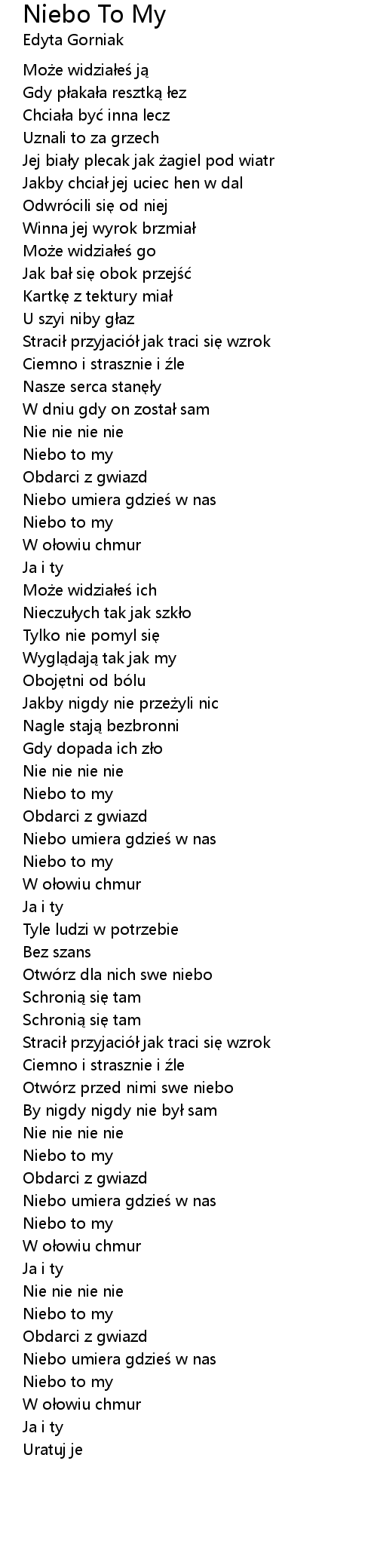 | Song | Niebo To My |
