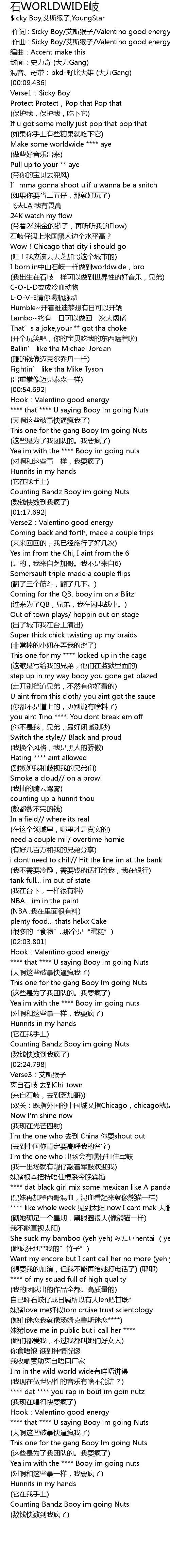 | [00:18.191] | Make some worldwide **** aye |