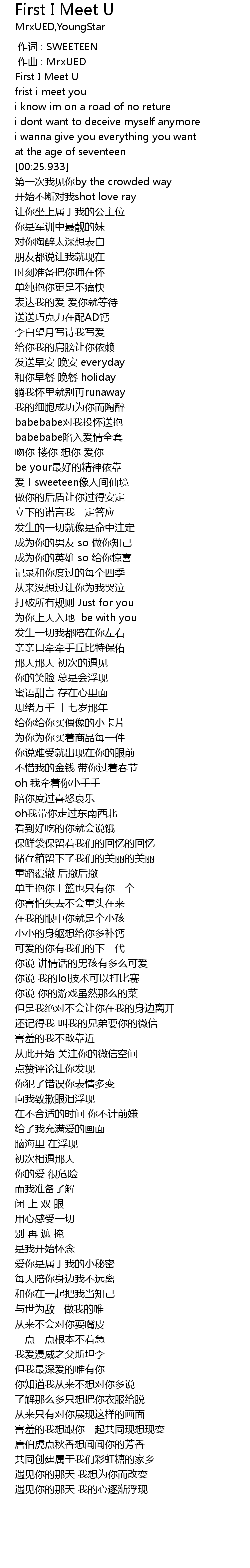 | [00:15.433] | frist i meet you |
