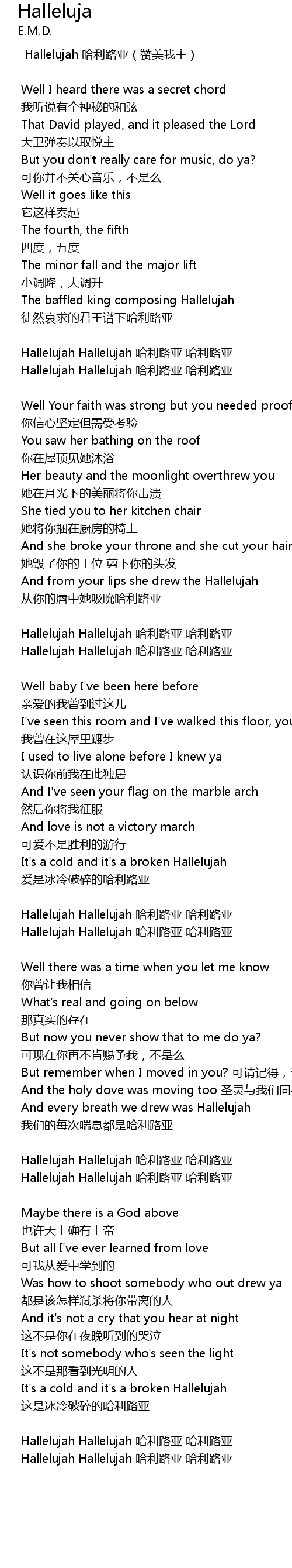 | Hallelujah 哈利路亚(赞美我主) | |