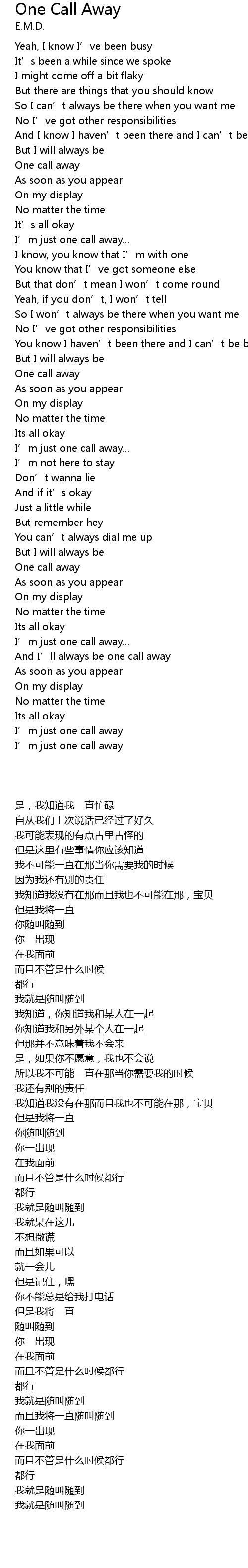 | [03:02.600] | And I’ll always be one call away |