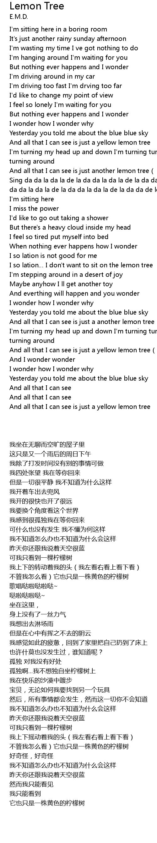 | [03:01.33] | And all that I can see is just a yellow lemon tree |