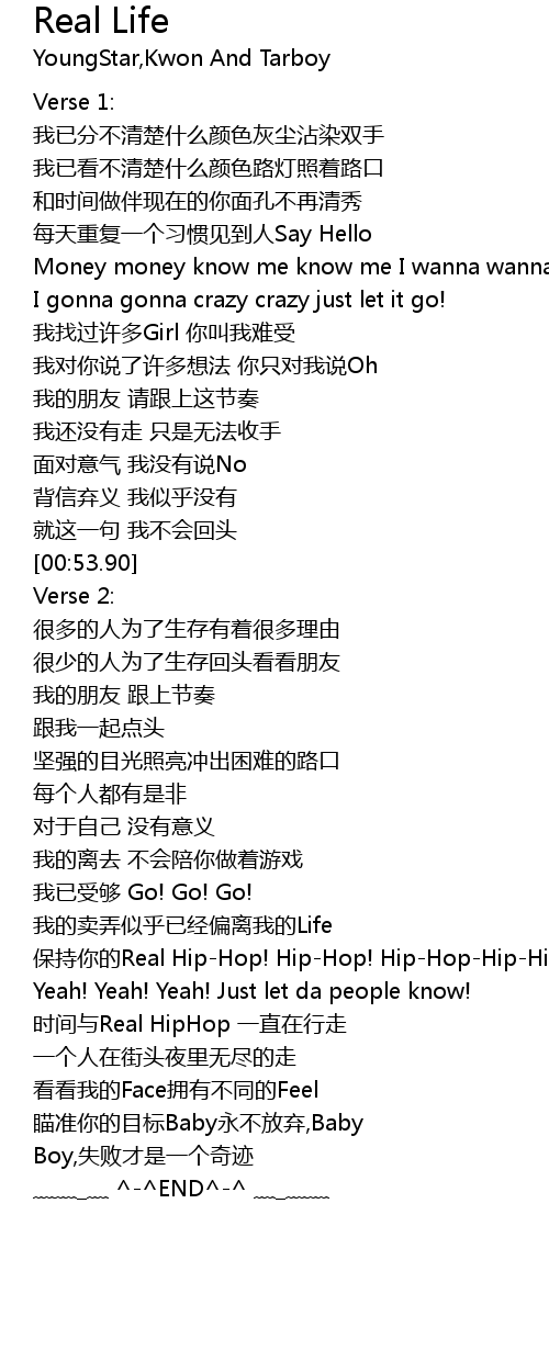 | [01:44.36] | 时间与Real HipHop 一直在行走 |