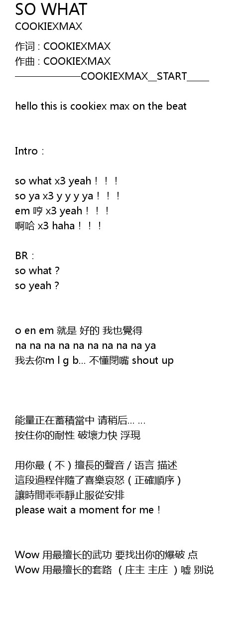 | 作词 : COOKIEXMAX | |
