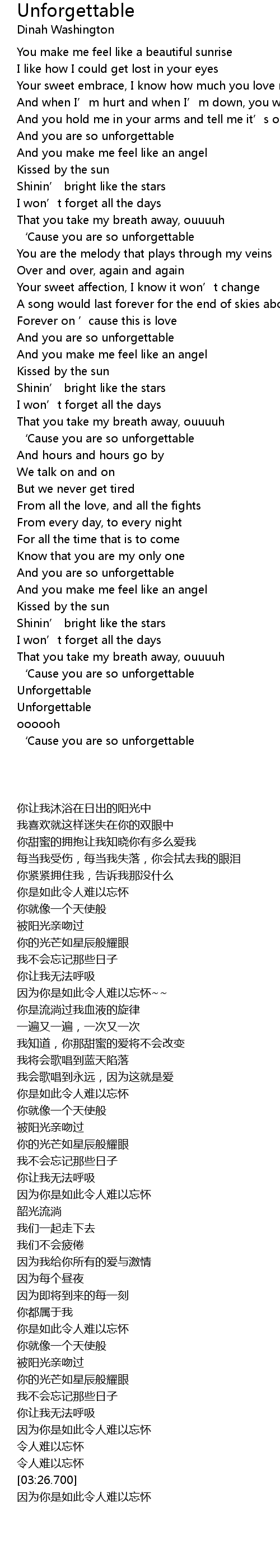 | [03:31.000] | ‘Cause you are so unforgettable |