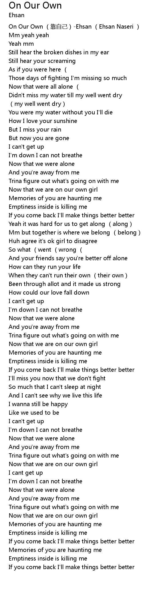 | [00:00.00] | On Our Own kào zì jǐ Ehsan Ehsan Naseri |