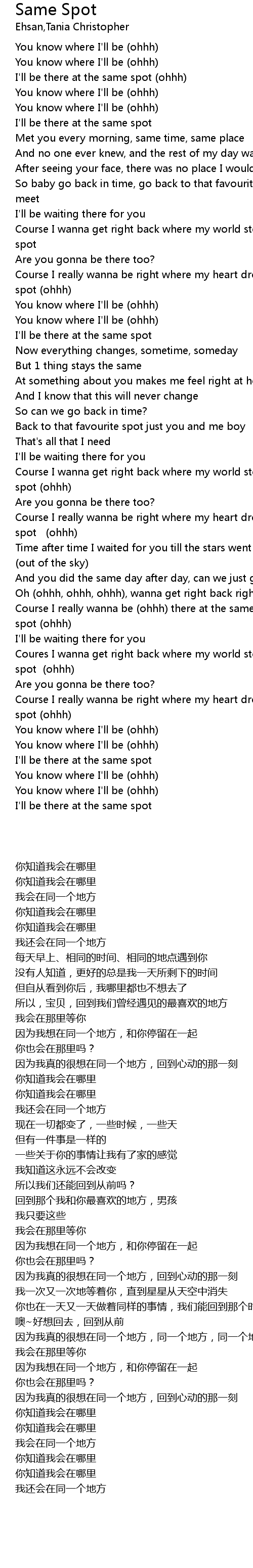 | [02:37.77] | Course I really wanna be (ohhh) there at the same spot same spot same spot (ohhh) |
