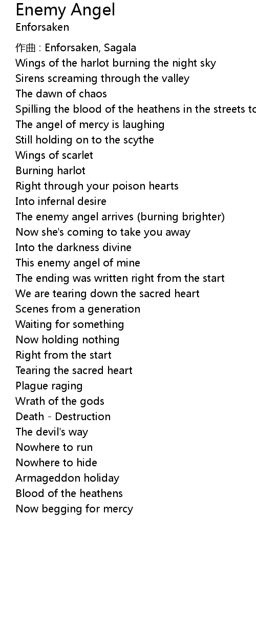 | The enemy angel arrives burning brighter | |