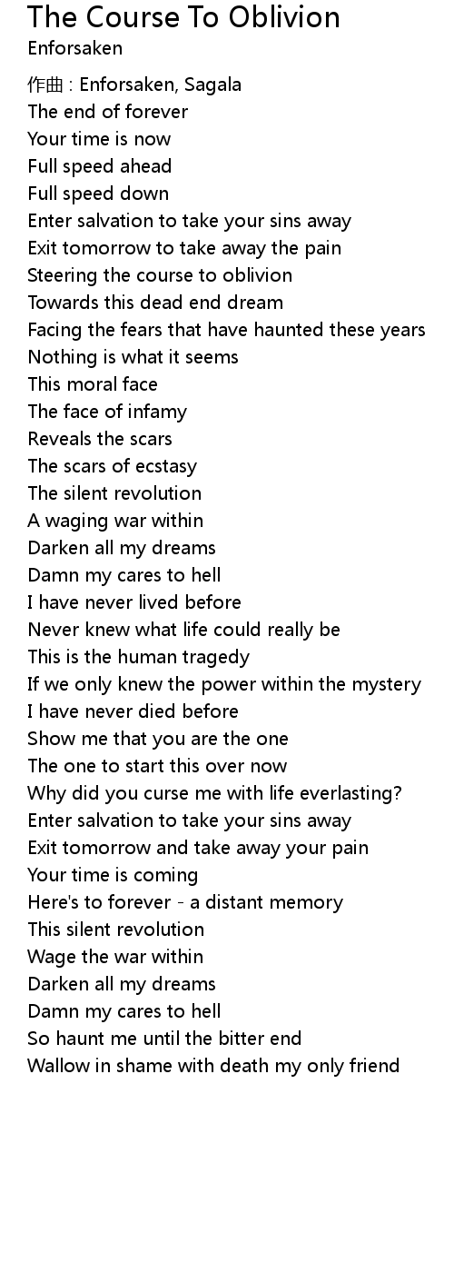 | Song | The Course To Oblivion |
