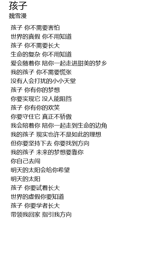 | [02:52.33] | 我的孩子 未来的梦想要靠你 |
