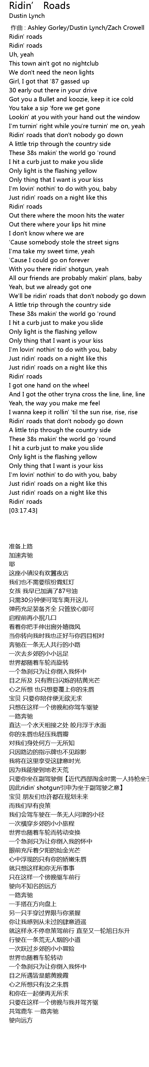 | [00:00.000] | zuò qǔ : Ashley Gorley Dustin Lynch Zach Crowell |