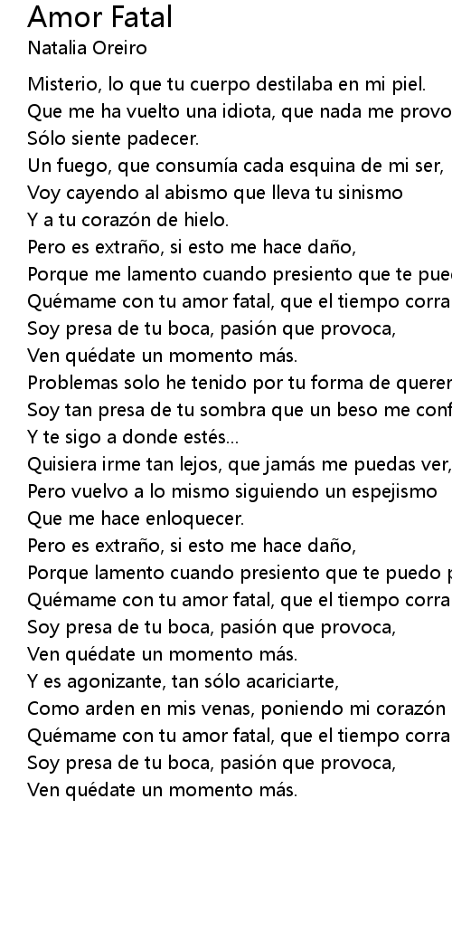 | Que mame con tu amor fatal, que el tiempo corra despacio. | |