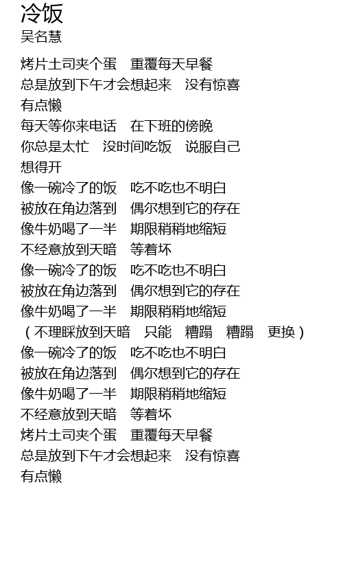 | [01:43.24] | 像一碗冷了的饭 吃不吃也不明白 |