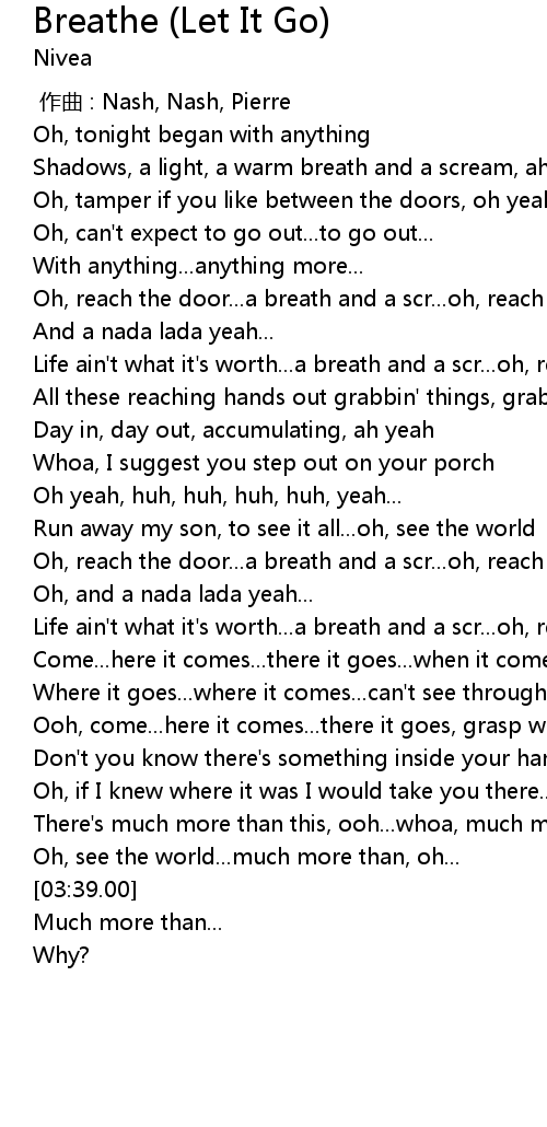| [02:41.00] | Life ain't what it's worth...a breath and a scr...oh, reach the door |