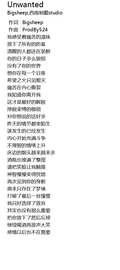 | [00:00.000] | 作词 : Bigsheep |