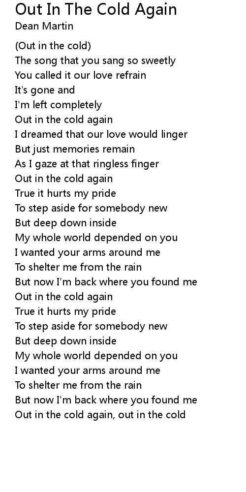 Out in the cold again, out in the cold |