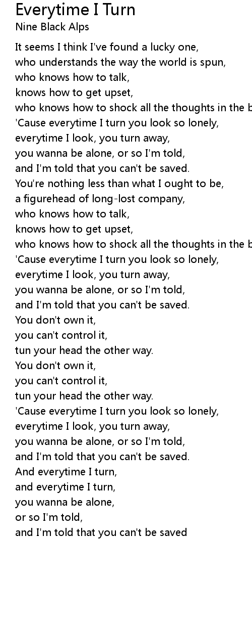 and everytime I turn, |