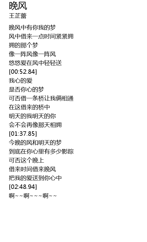 | [00:19.61] | 晚风中有你我的梦 |
