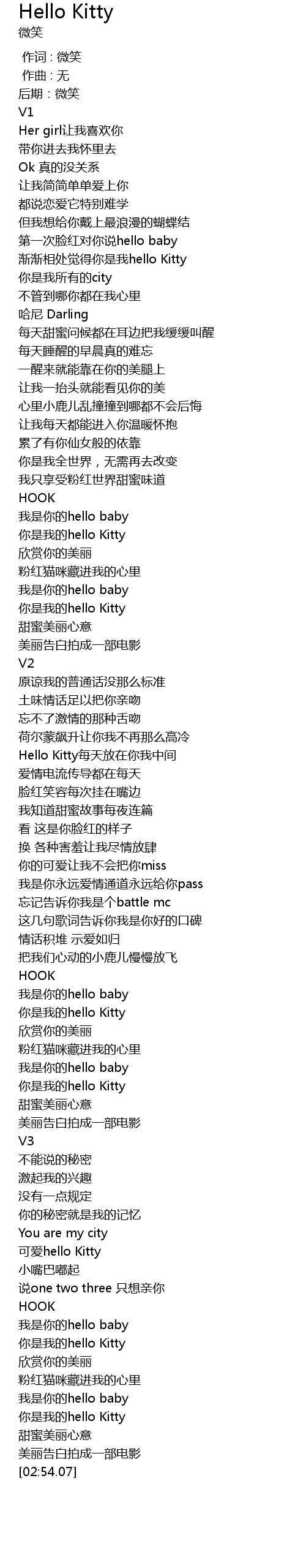 | [01:58.13] | nǐ shì wǒ de hello Kitty |