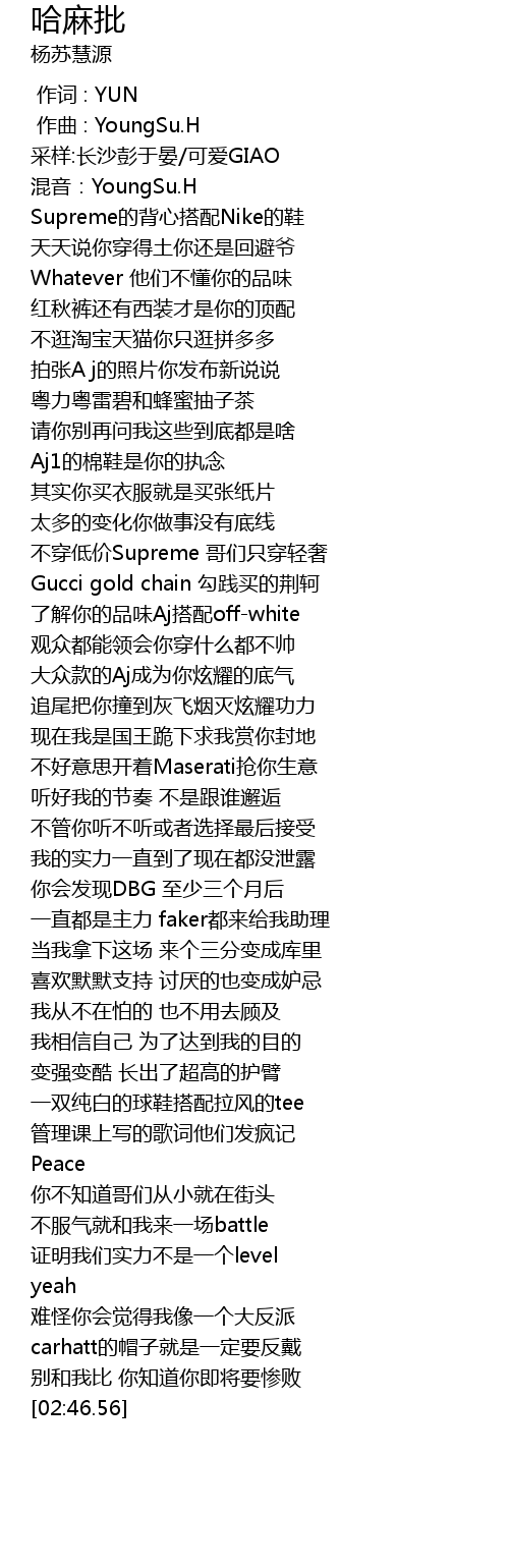 | [00:48.92] | 不穿低价Supreme 哥们只穿轻奢 |