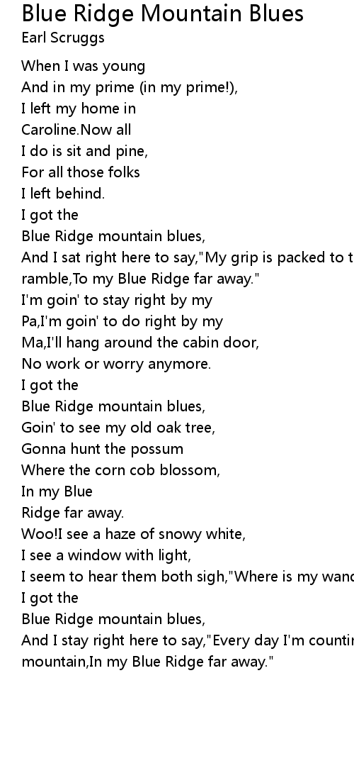 And I stay right here to say,"Every day I'm countin''Til I climb that mountain,In my Blue Ridge far away." |