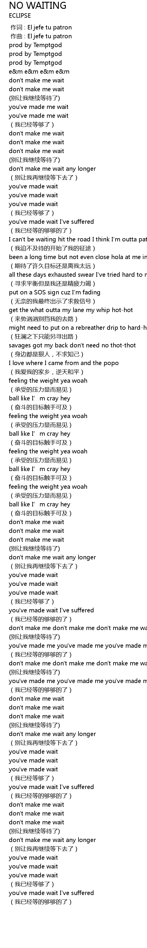 | [01:38.610] | don' t make me don' t make me don' t make me wait |
