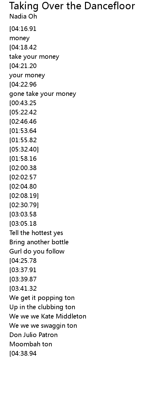 | [04:54.94][04:18.42][03:23.47][02:37.91][00:34.39][00:16.32][00:11.58] | We gone take your money |