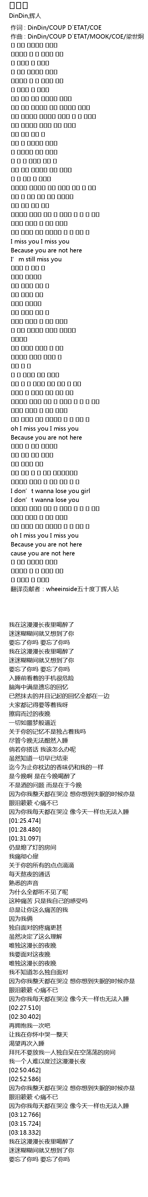 | [00:00.000] | 作词 : DinDin/COUP D`ETAT/COE |