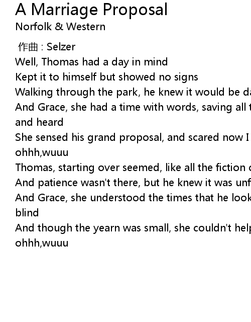 | [00:55.21] | She sensed his grand proposal, and scared now I suppose |
