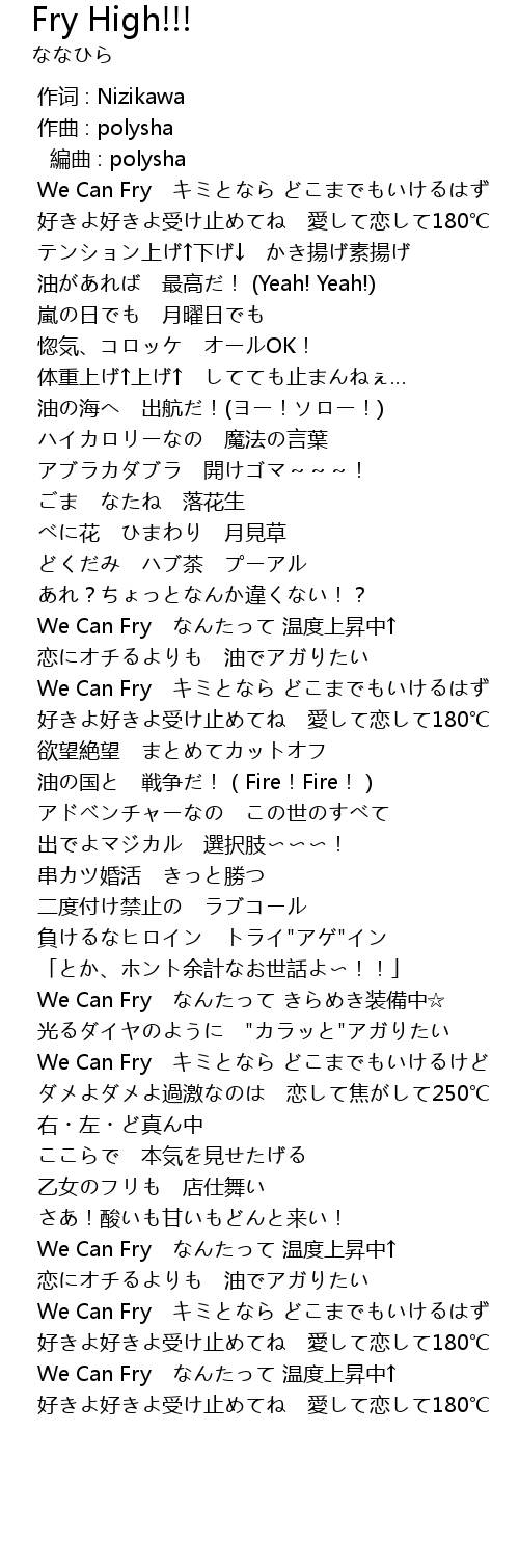 | [02:41.402] | We Can Fry なんたって 温度上昇中↑ |