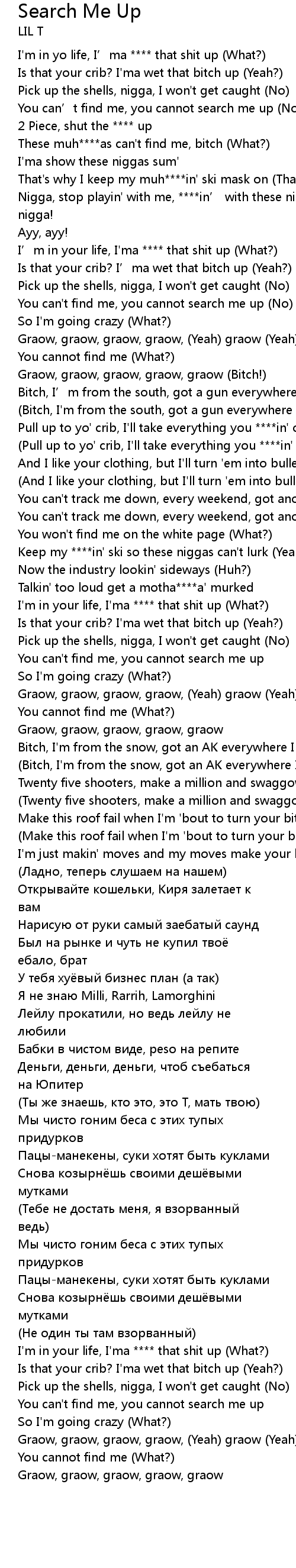 | [00:22.42] | These muh****as can't find me, bitch (What?) |