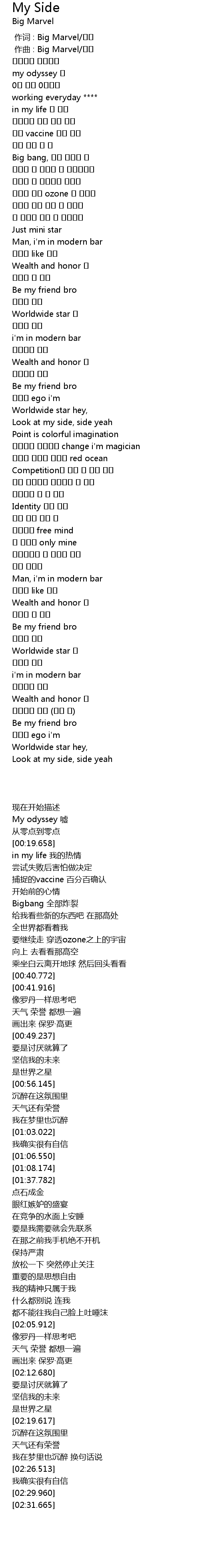 | [00:01.000] | zuò qǔ : Big Marvel |