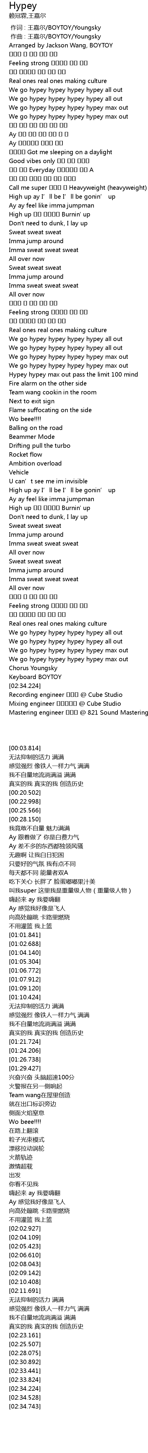 | [01:32.958] | Hypey hypey max out pass the limit 100 mind |