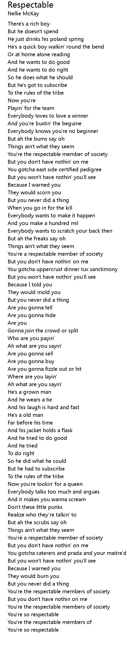 You're so respectable |