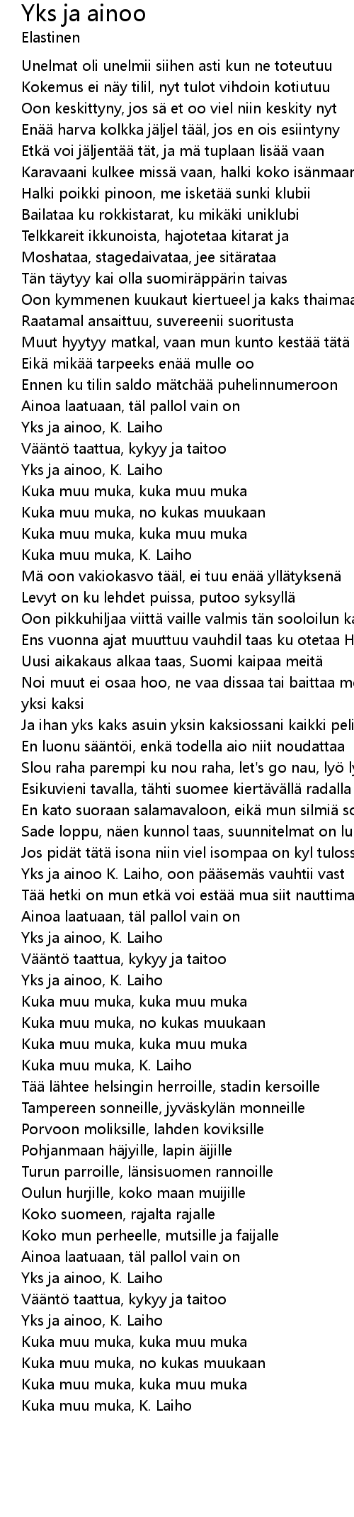 | Yks ja ainoo K. Laiho, oon p sem s vauhtii vast | |